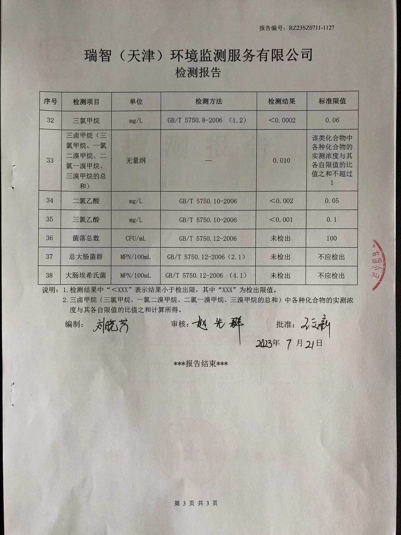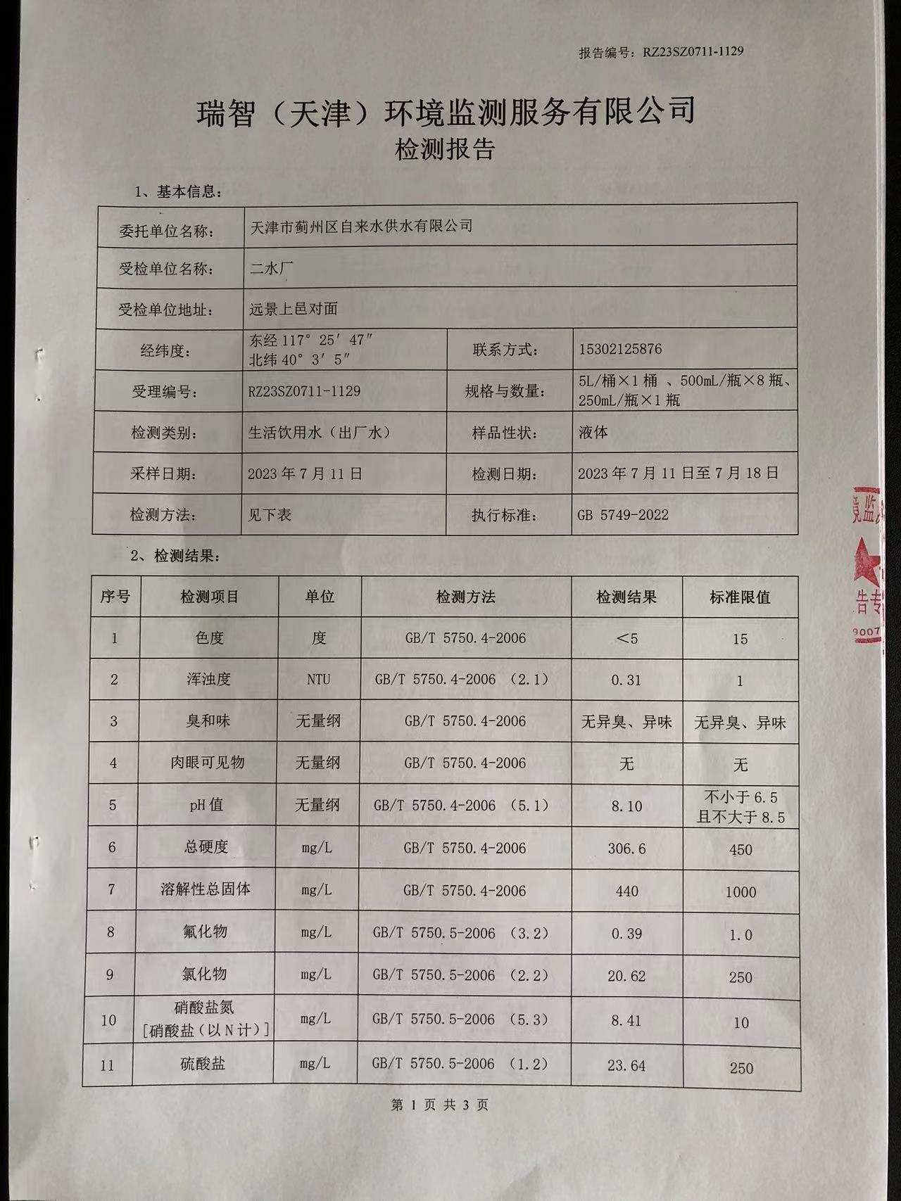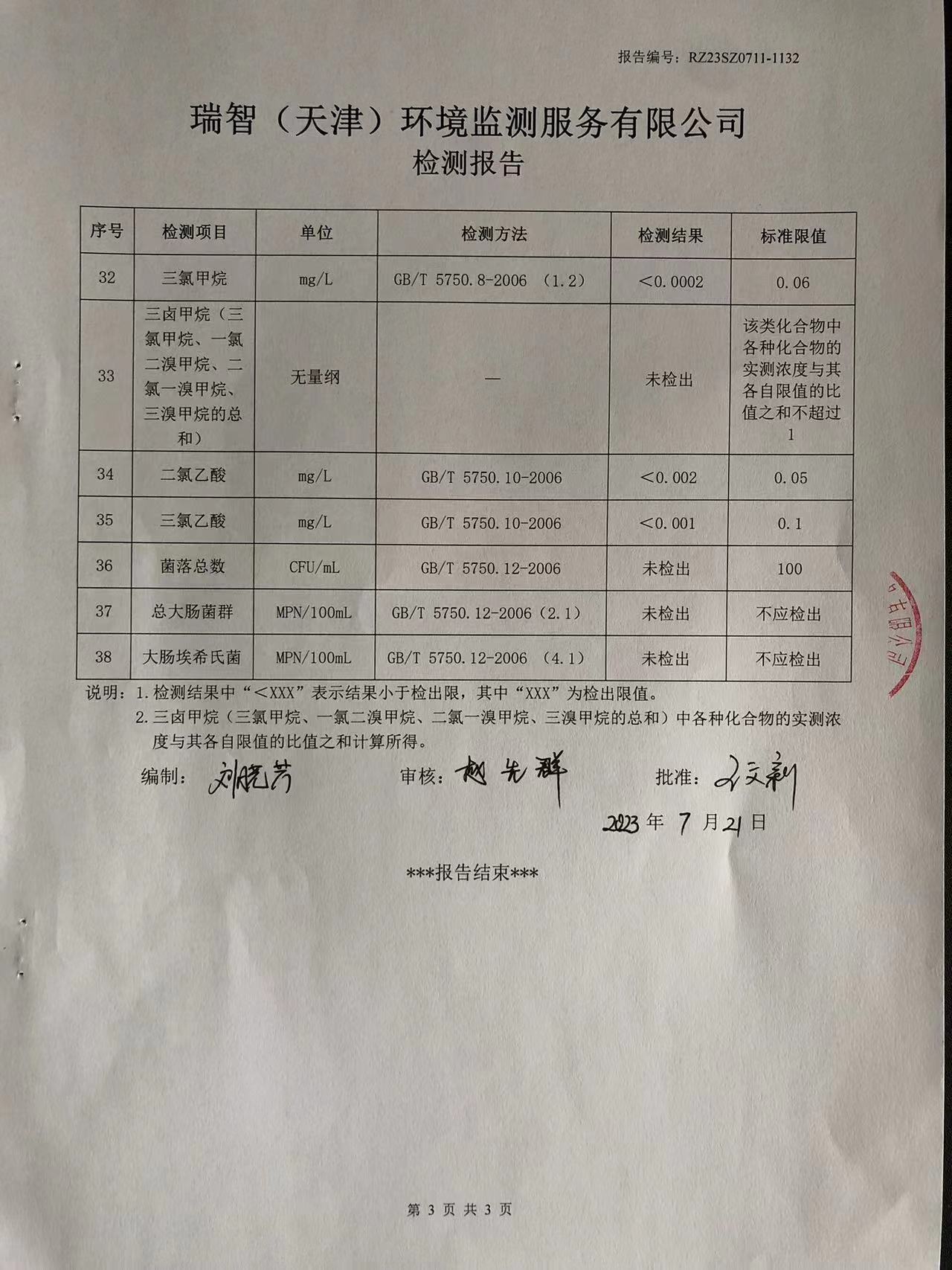2023年7月份水質(zhì)檢測(cè)報(bào)告