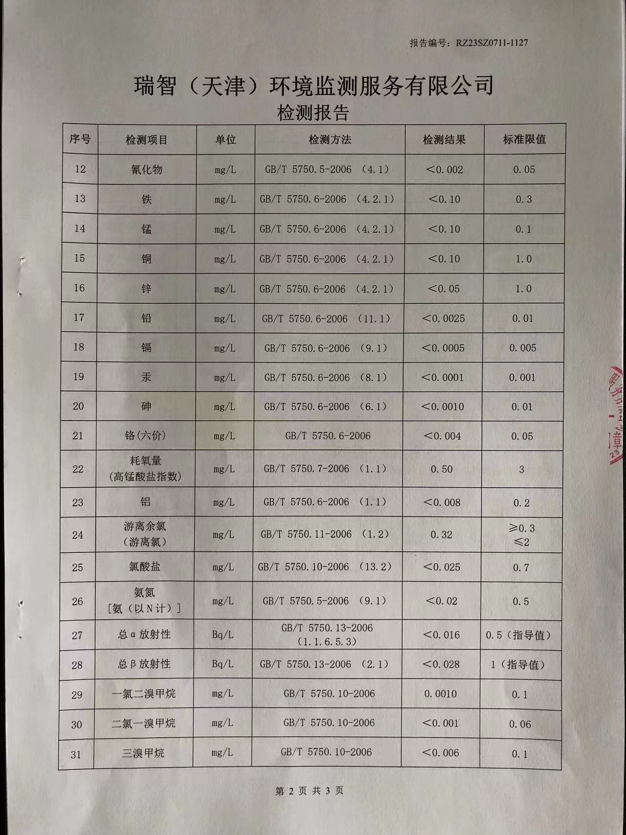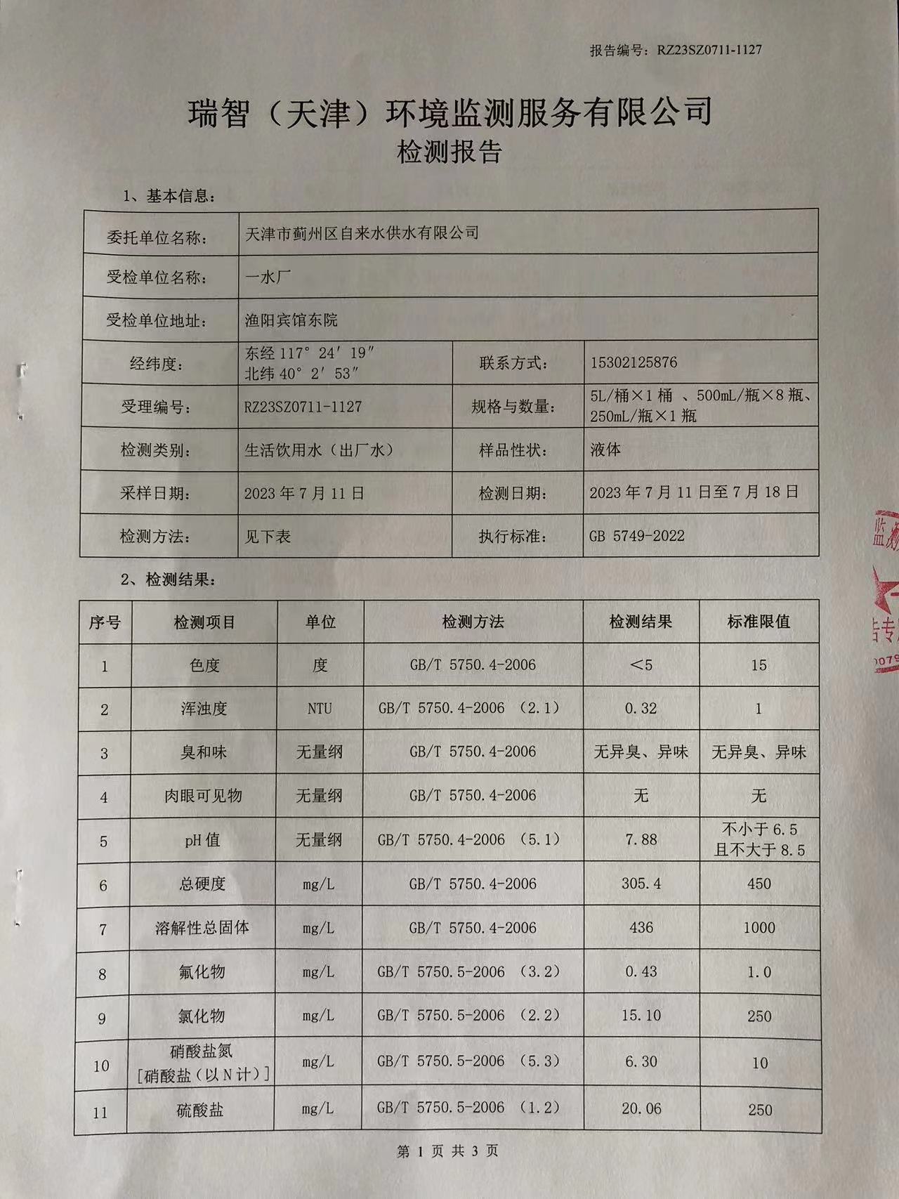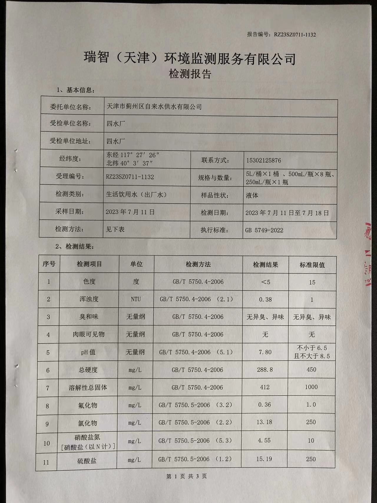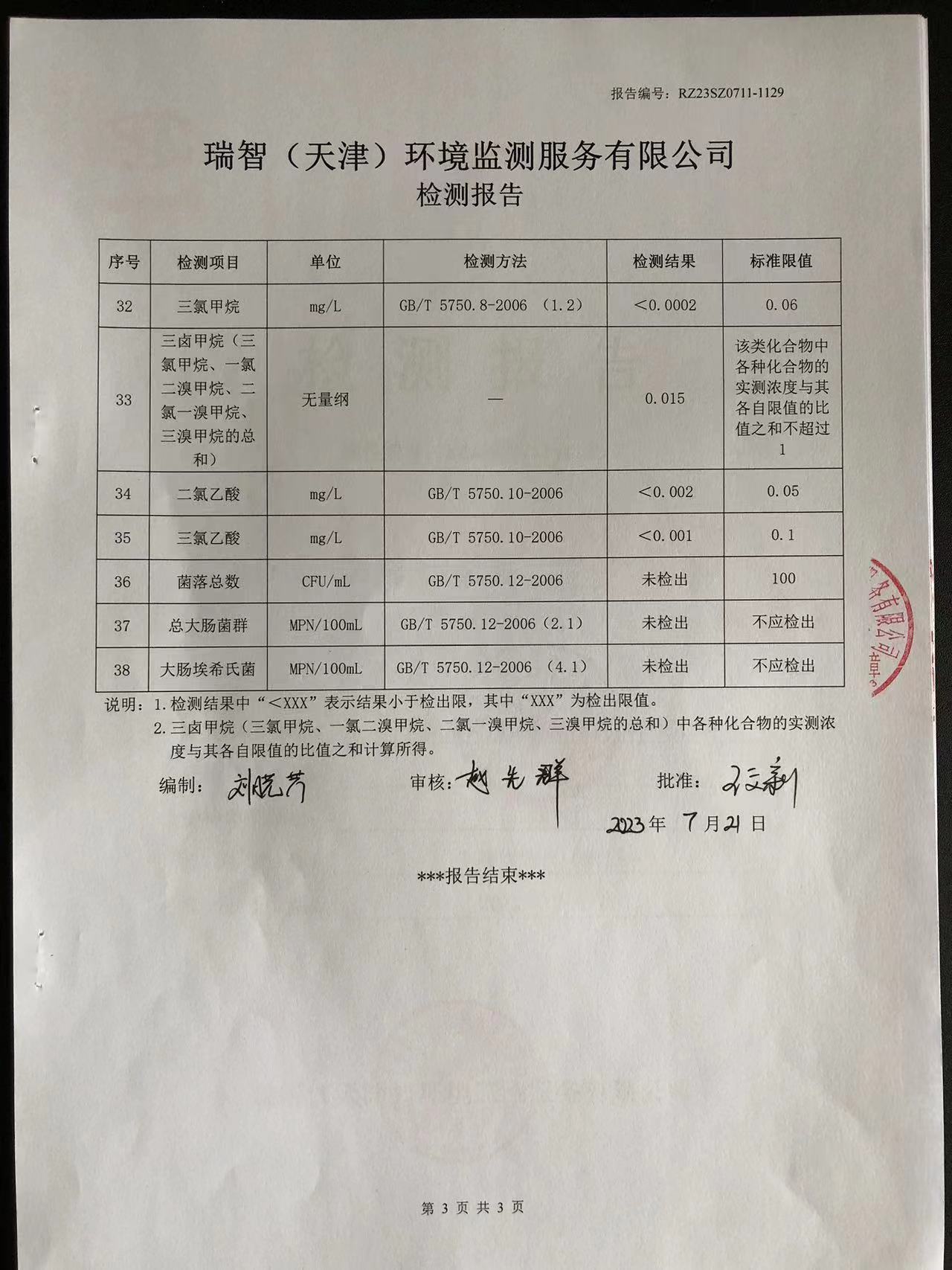 2023年7月份水質(zhì)檢測(cè)報(bào)告