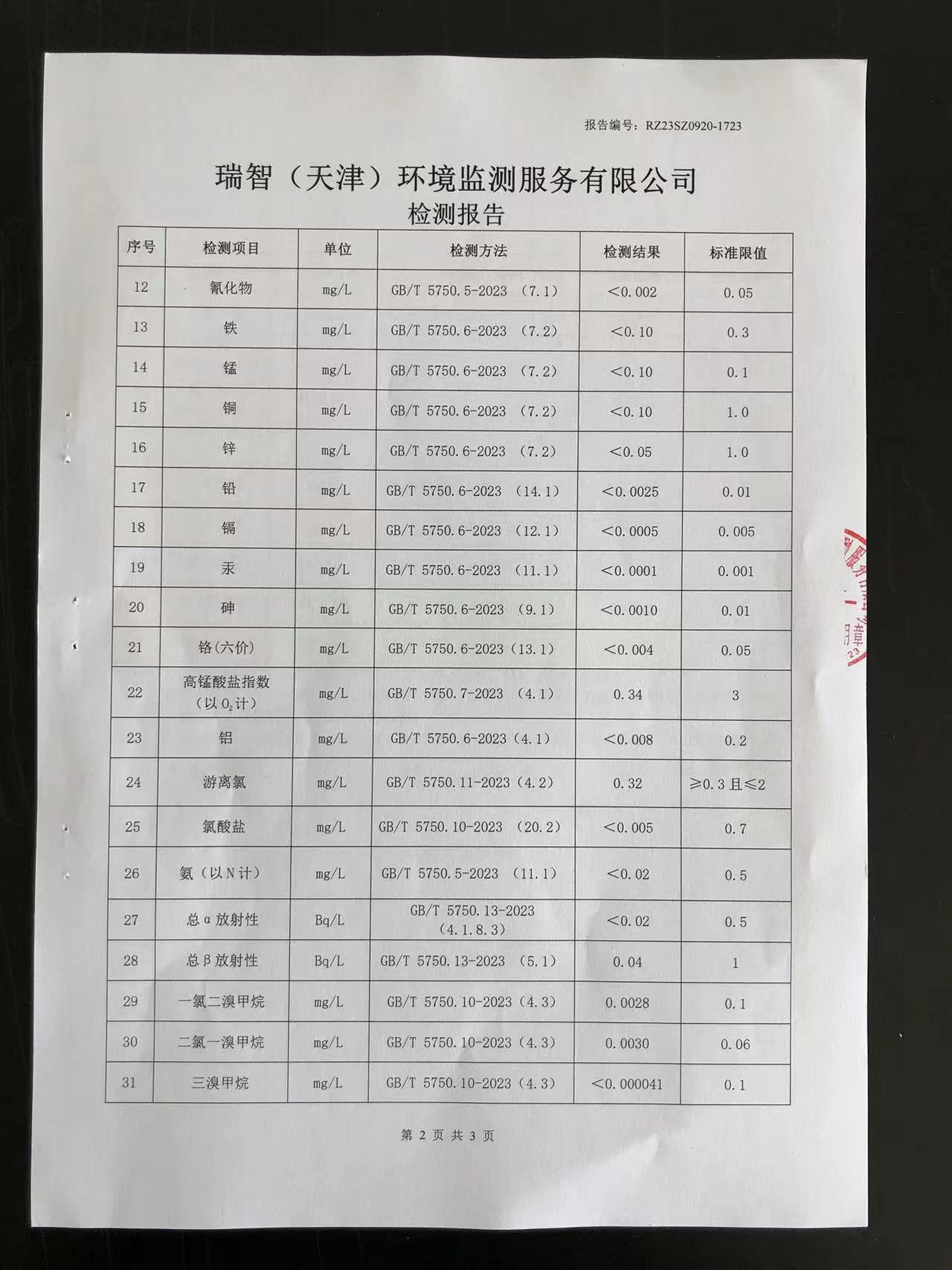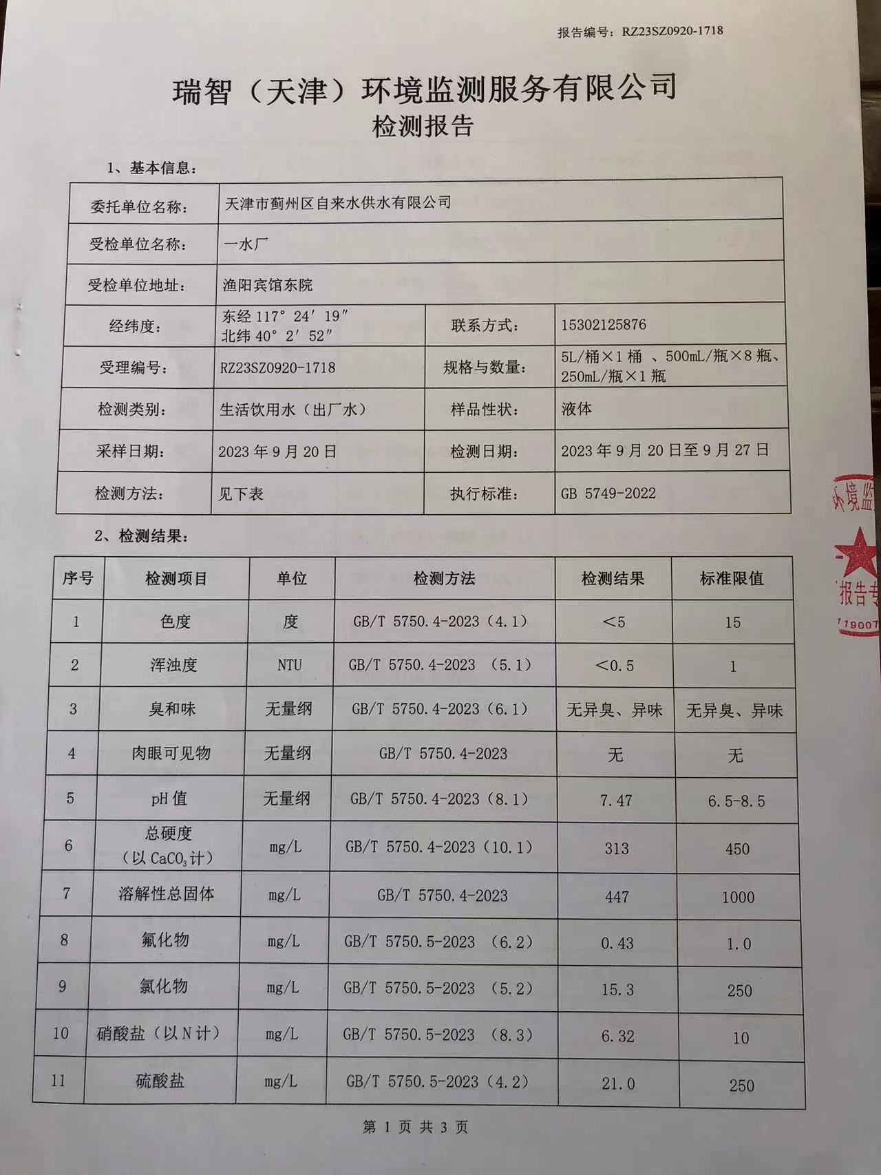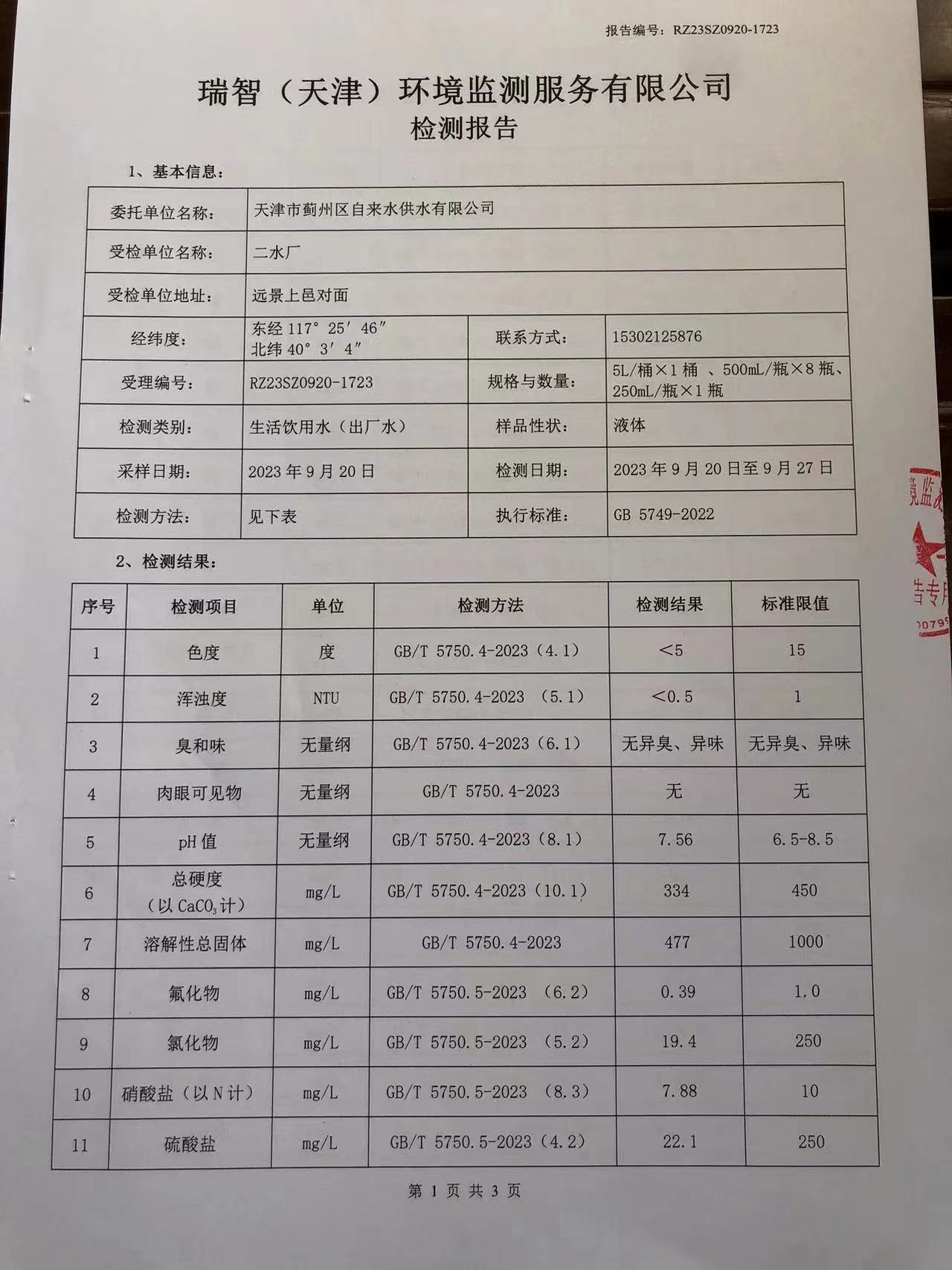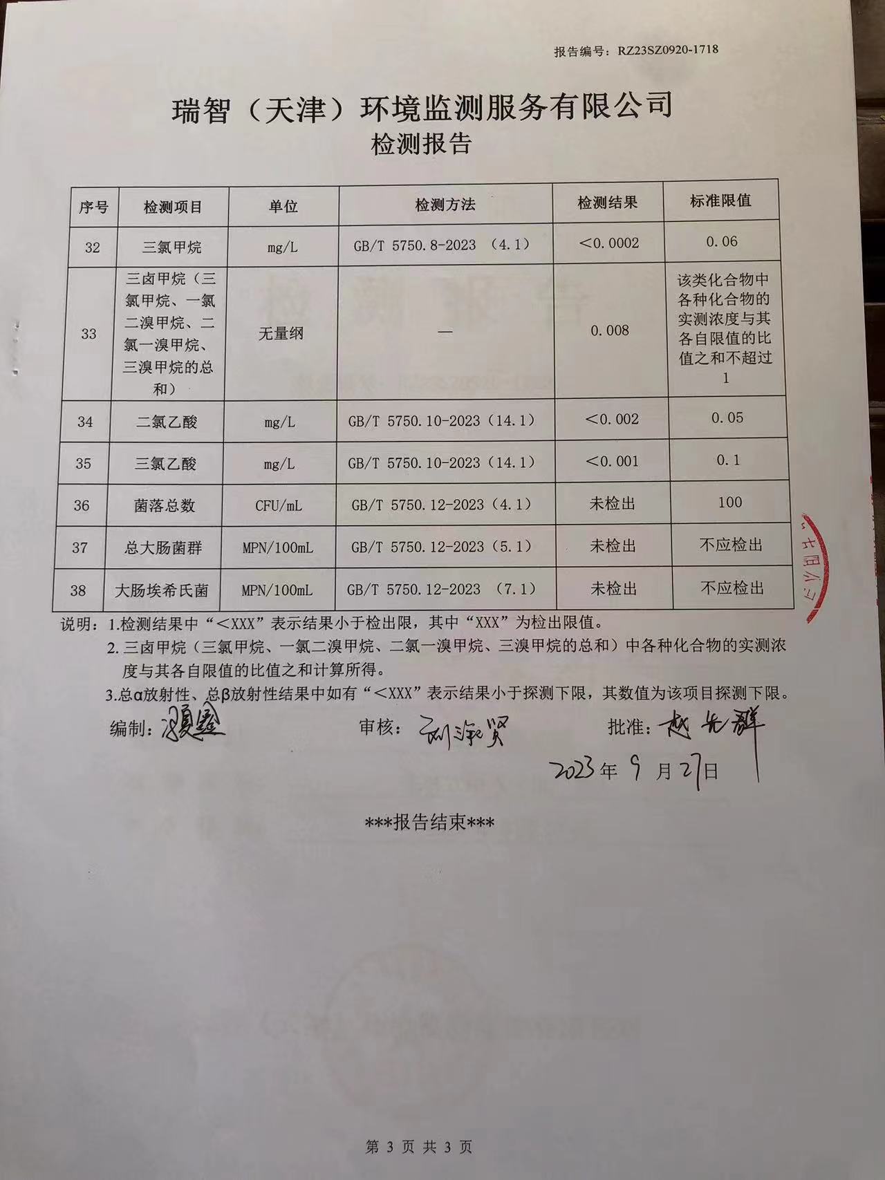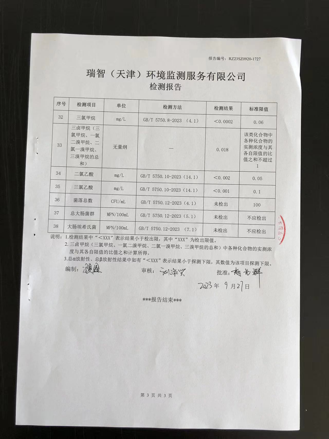 2023年9月份水質(zhì)檢測(cè)報(bào)告