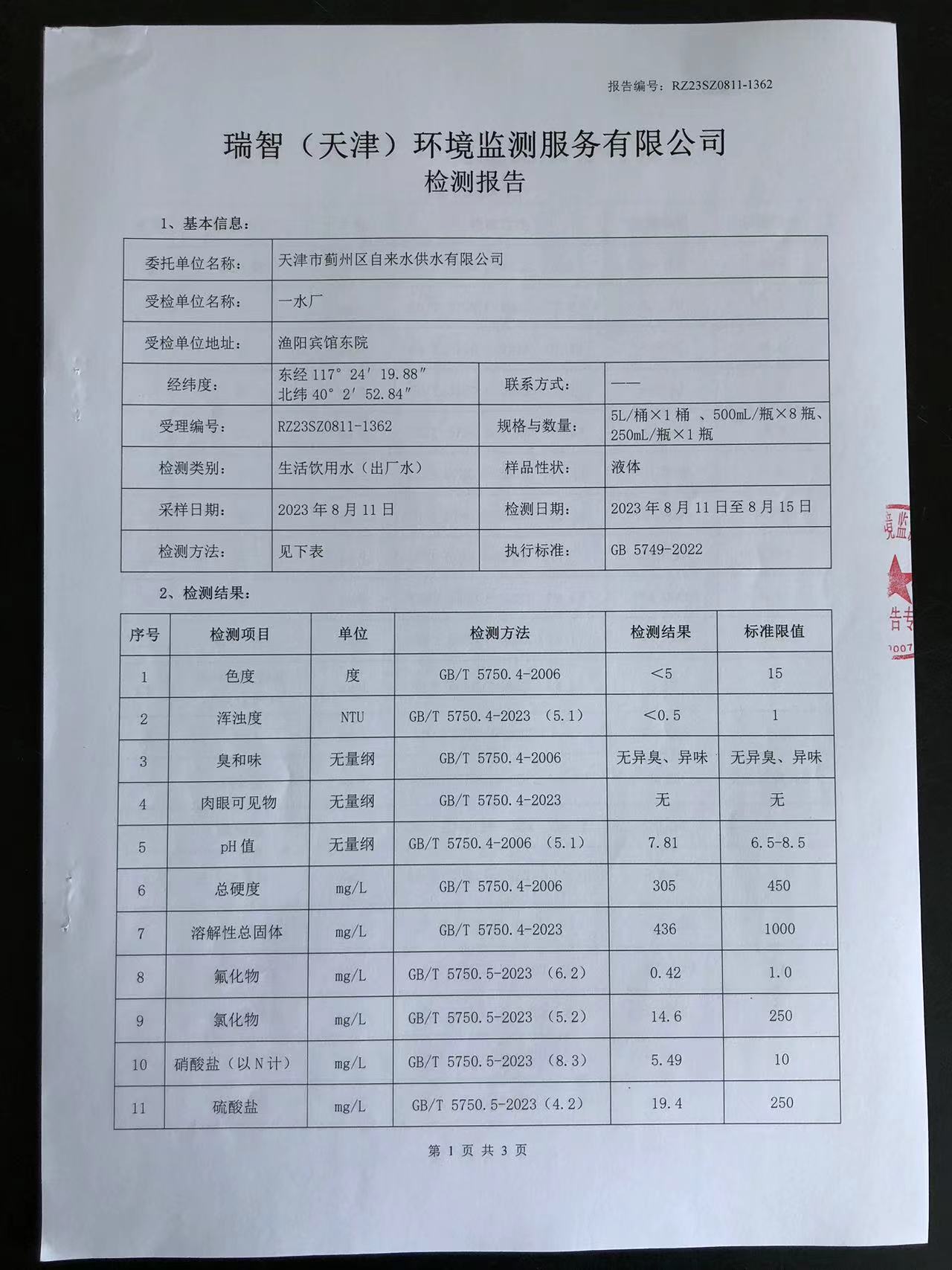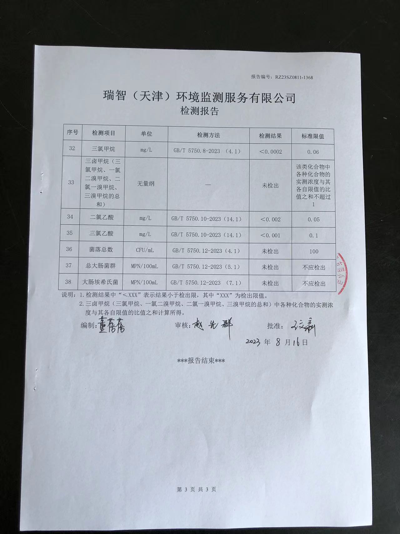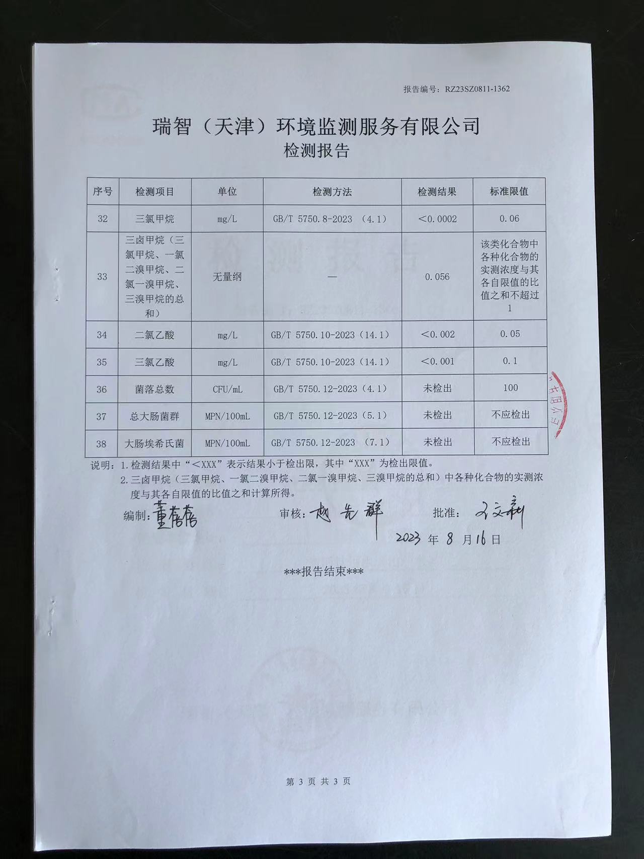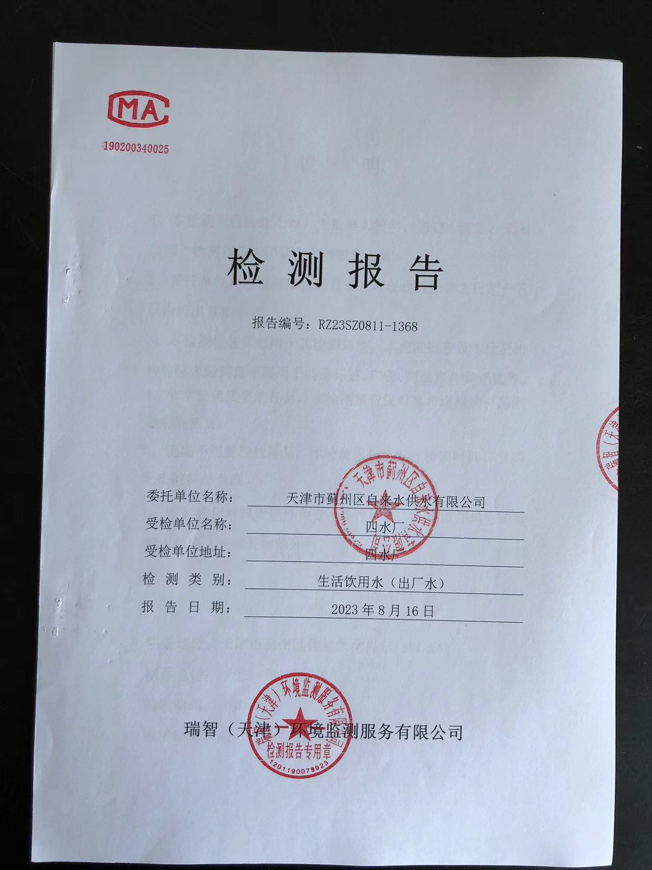 2023年8月份水質(zhì)檢測(cè)報(bào)告