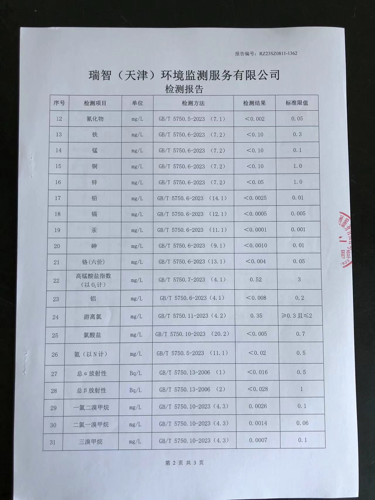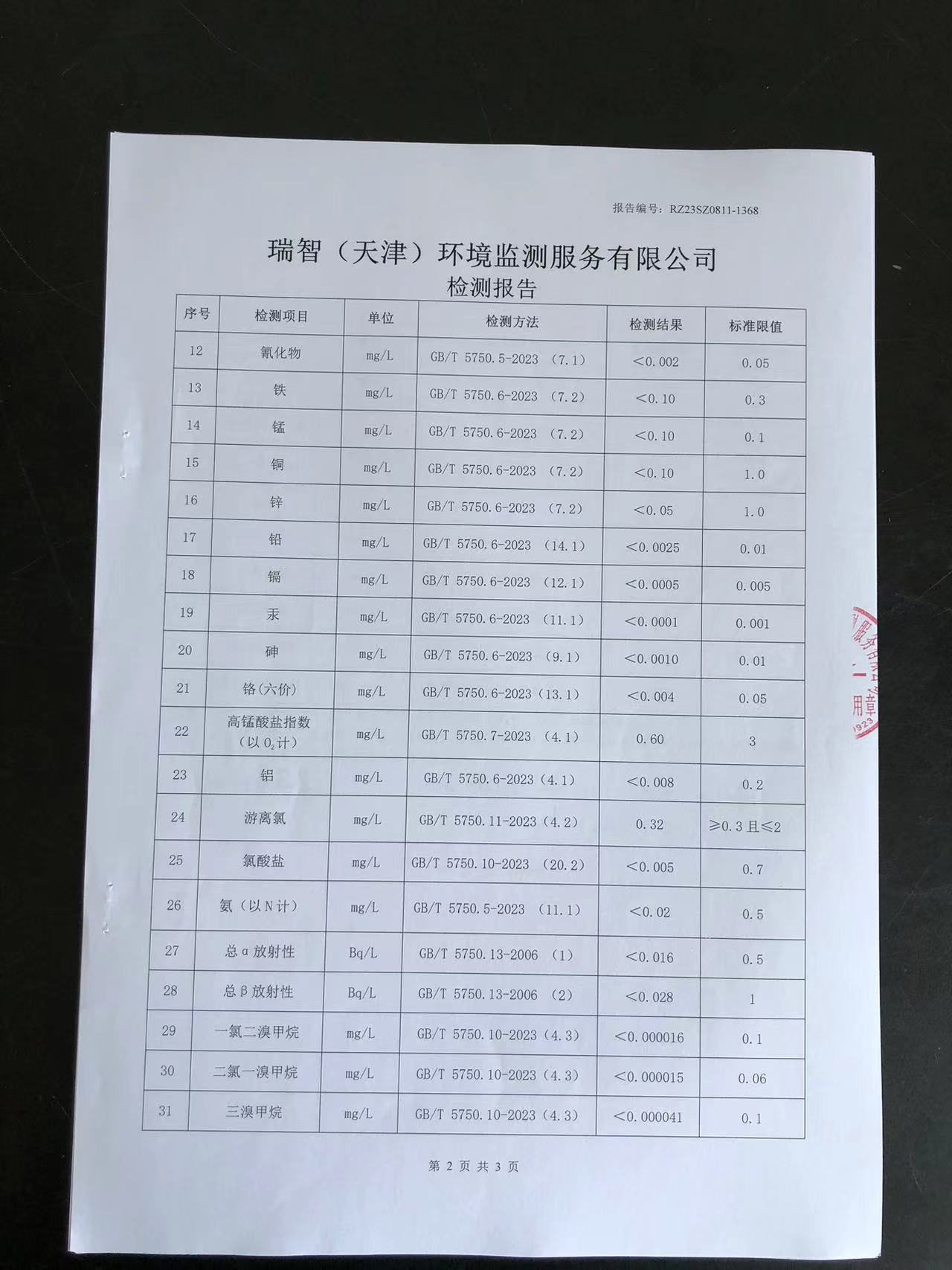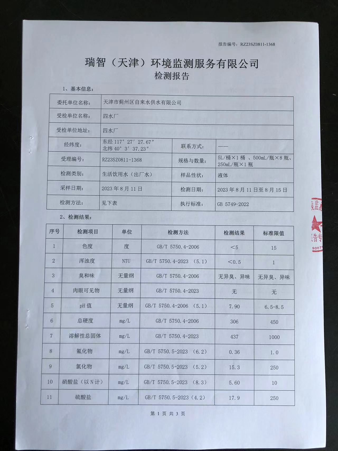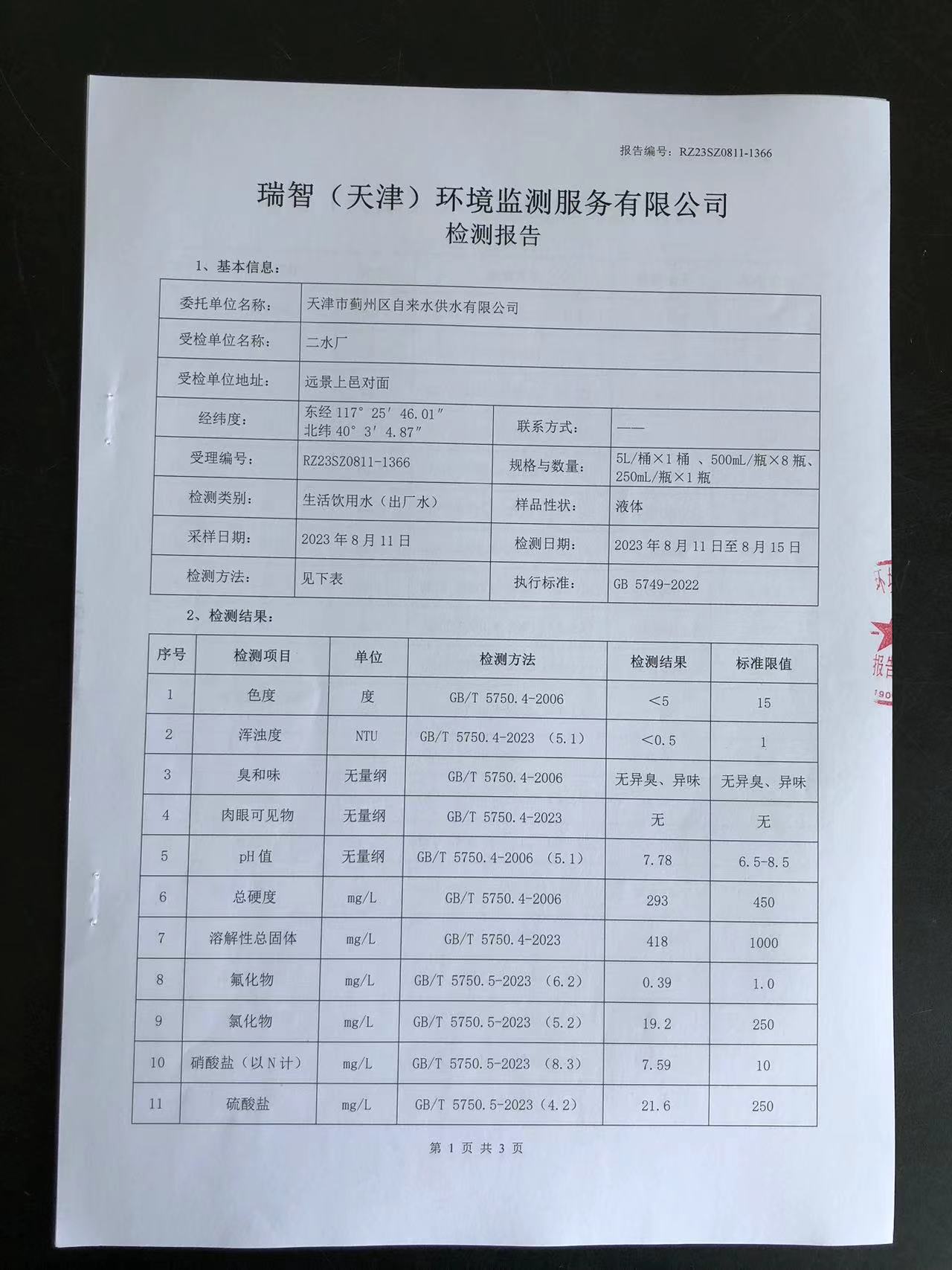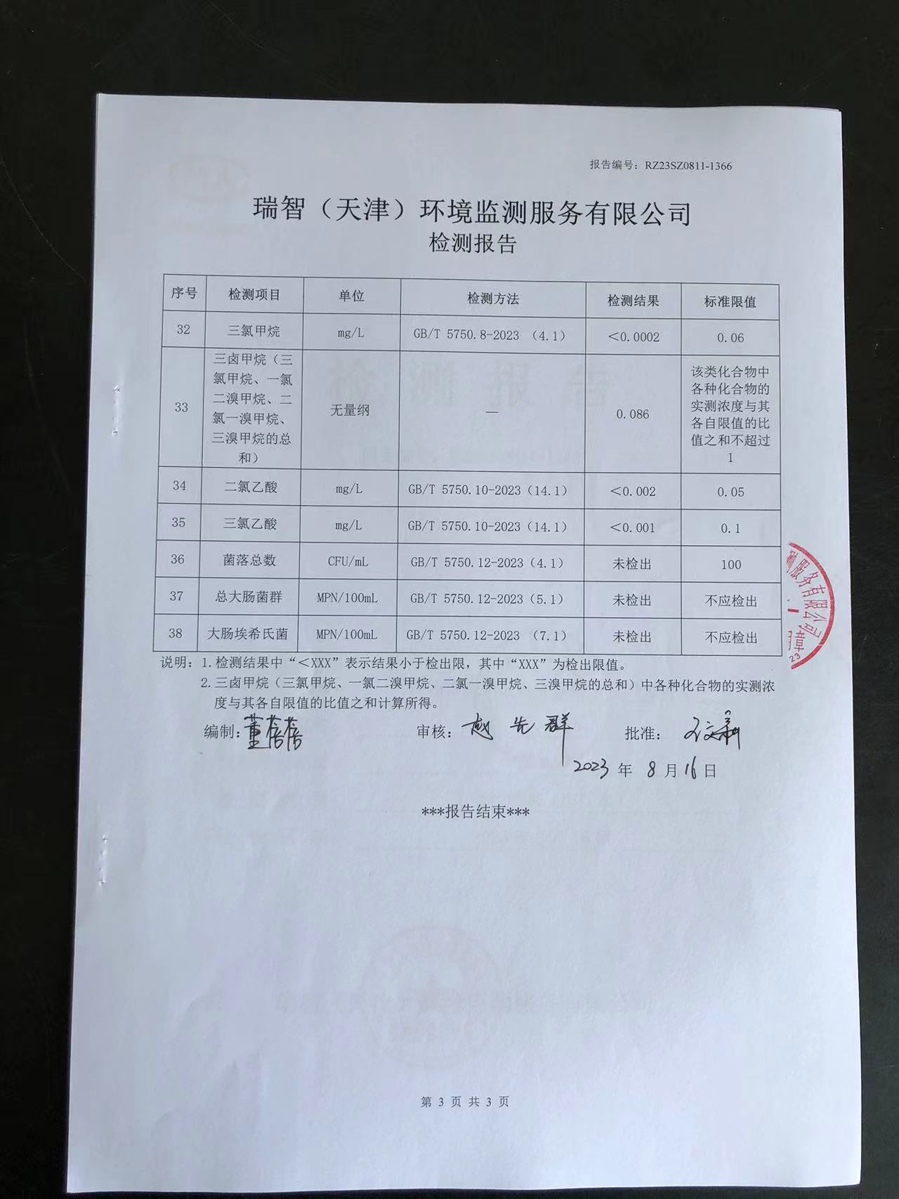2023年8月份水質(zhì)檢測(cè)報(bào)告