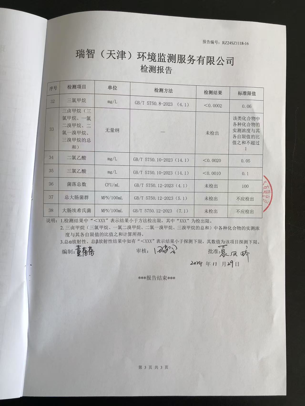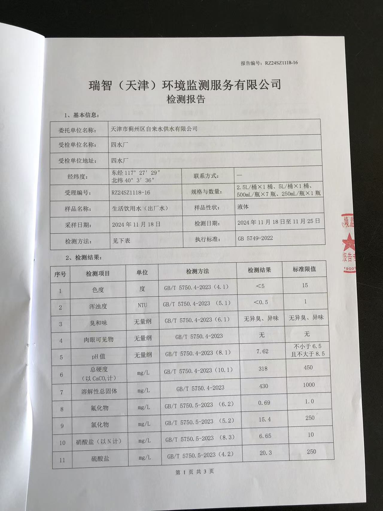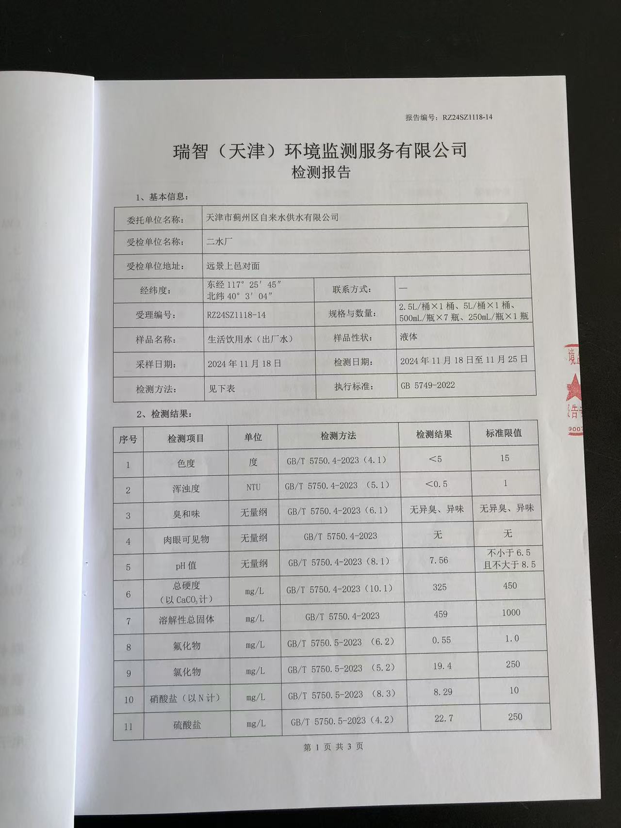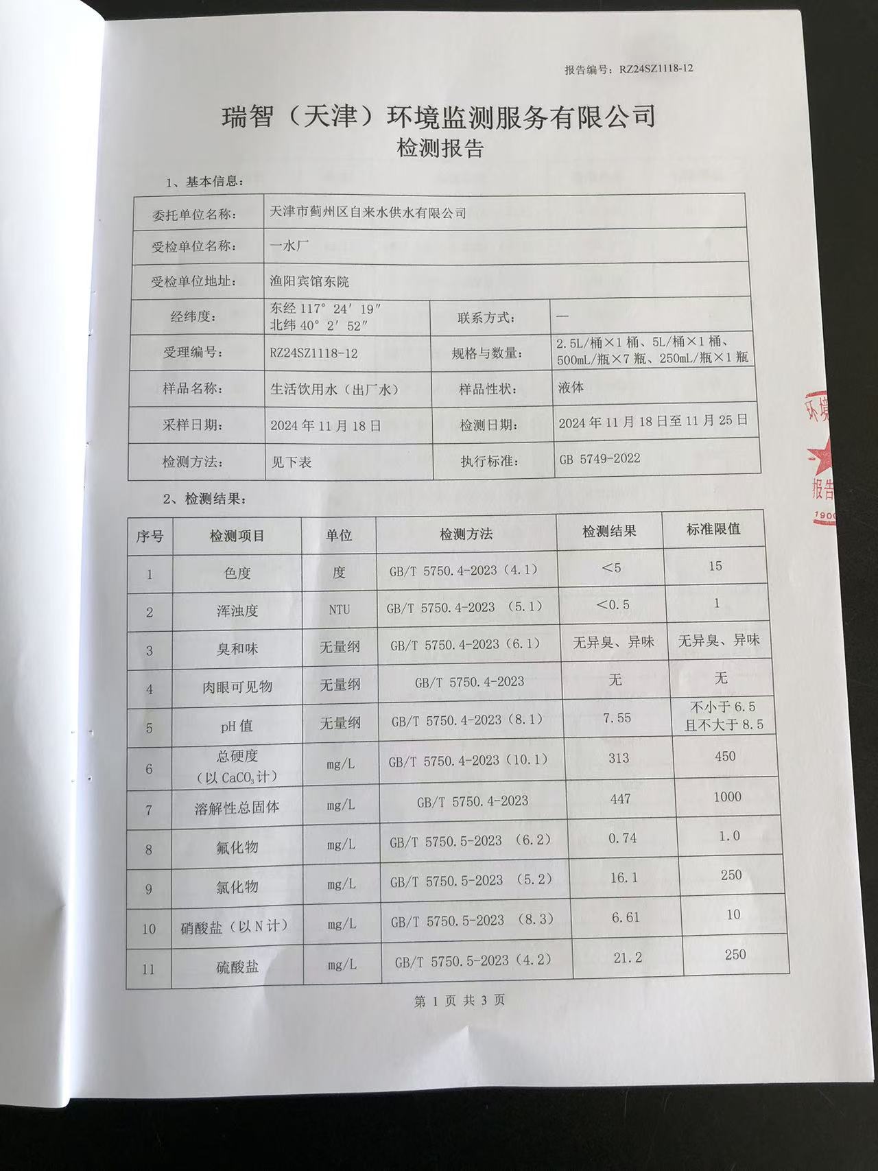 2024年11月份水質(zhì)檢測(cè)報(bào)告
