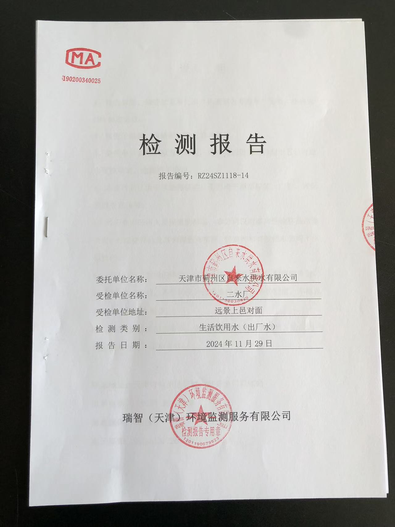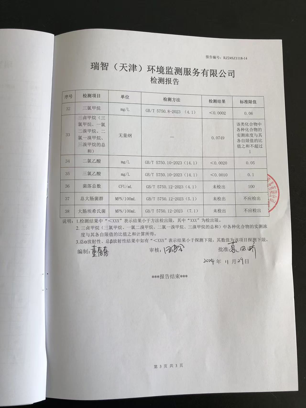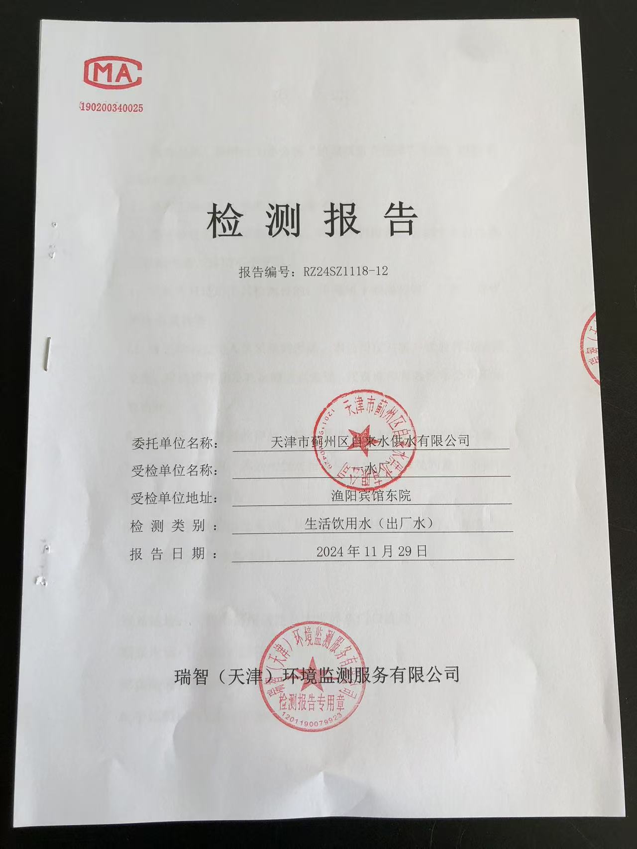2024年11月份水質(zhì)檢測(cè)報(bào)告