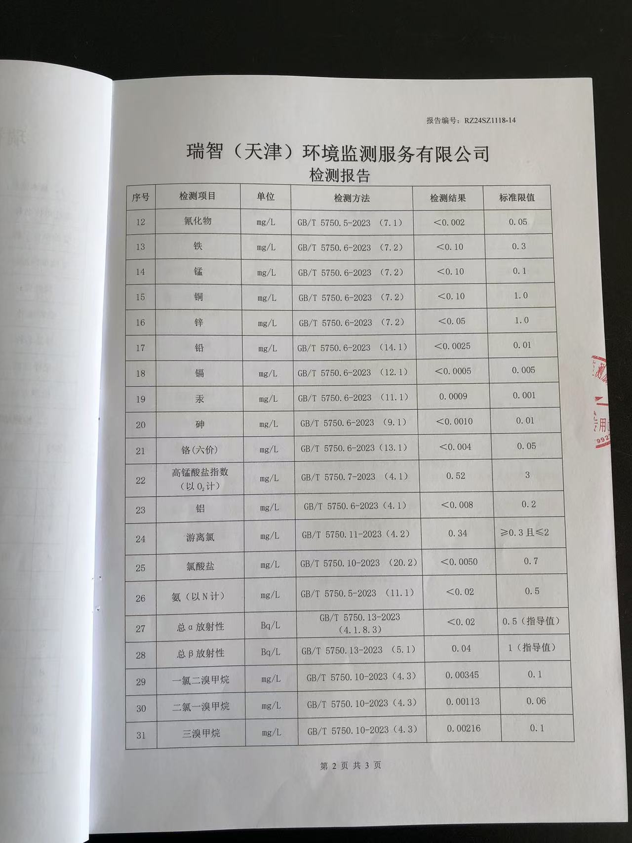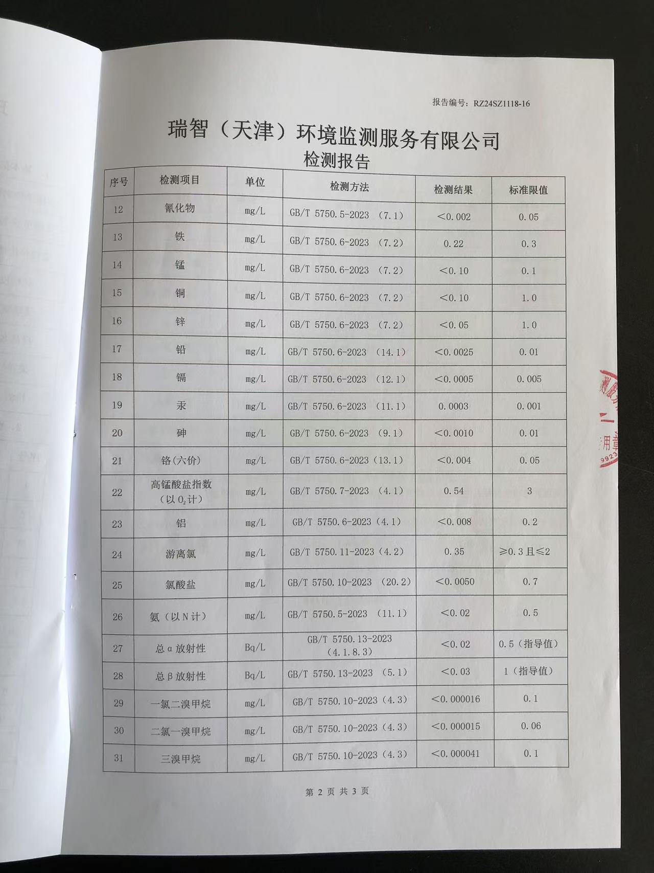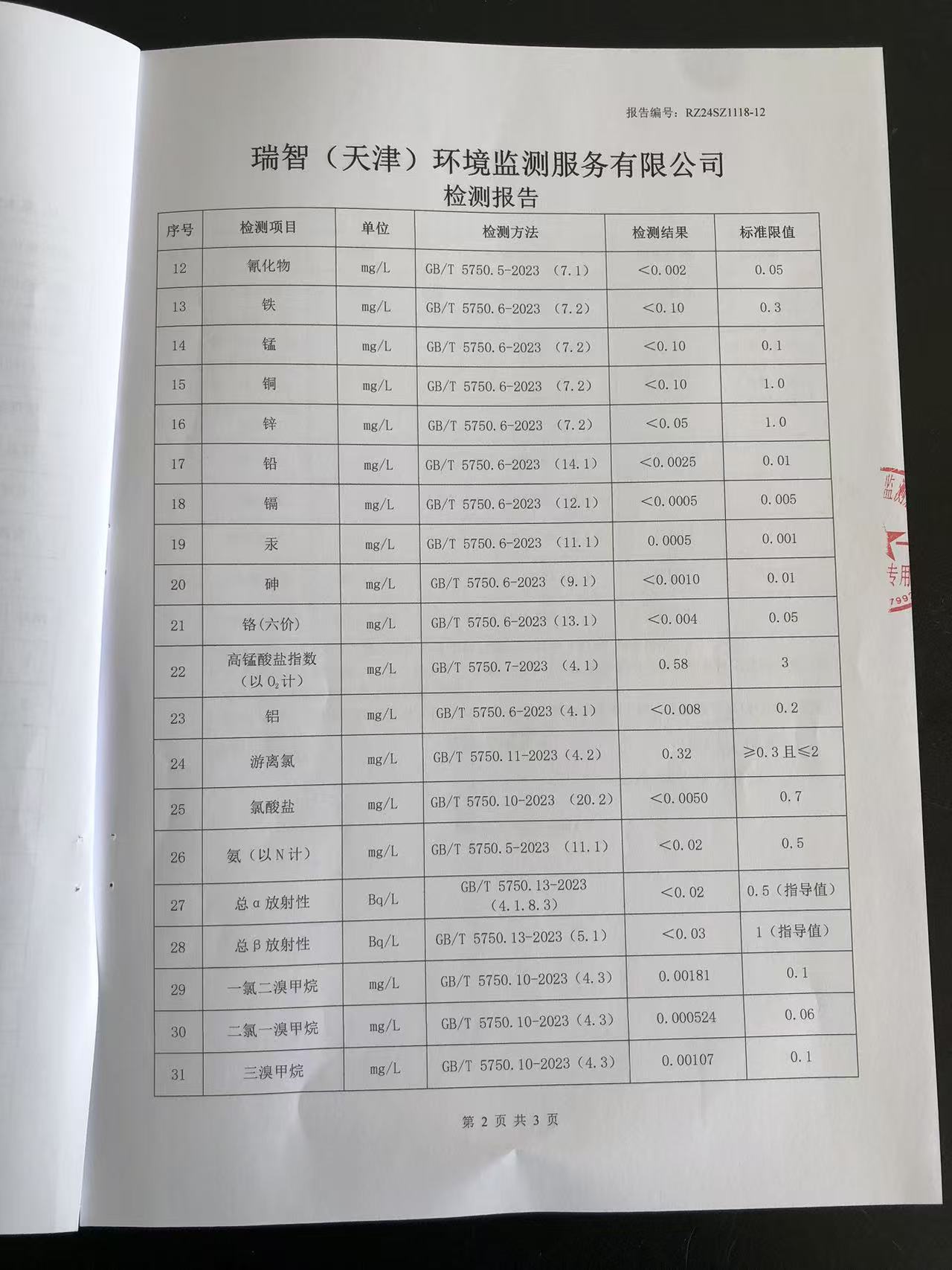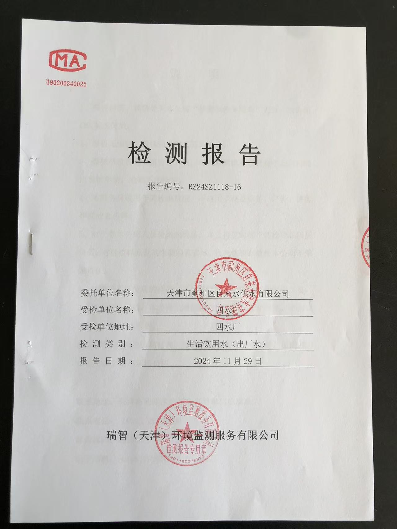 2024年11月份水質(zhì)檢測(cè)報(bào)告