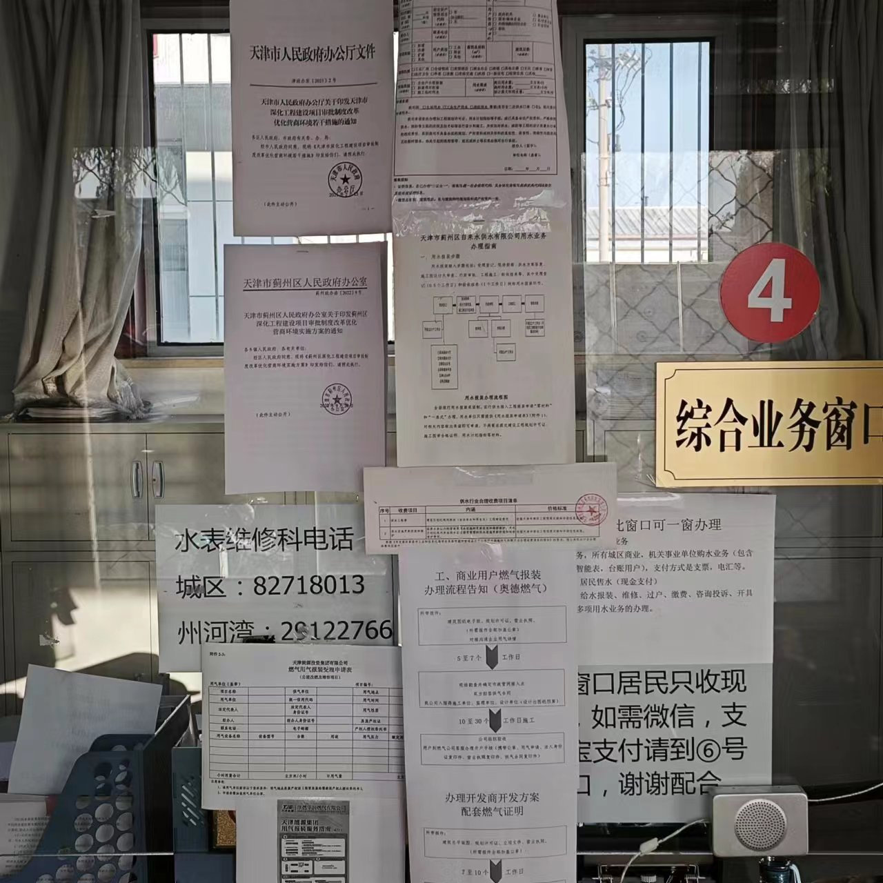 天津市薊州區自來水供水有限公司落實一窗綜合受理的有關文件精神,在供水營業廳內設置綜合業務窗口實現多項供水服務一窗式辦理。